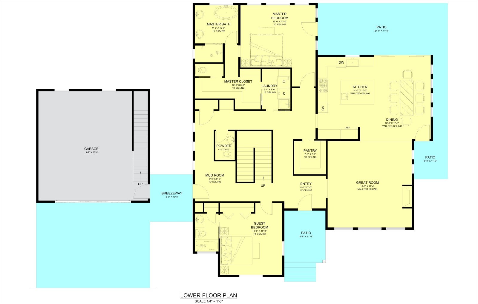 - Master Suite: The main level includes a luxurious master suite with a spacious bedroom, a walk-in closet, and an en-suite bathroom featuring dual vanities, a soaking tub, and a separate shower.
